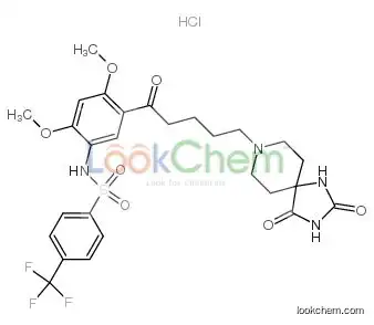 동의어: 8-[5-(2,4-DIMETHOXY-5-(4-TRIFLUOROMETHYLPHENYLSULPHONAMIDO)PHENYL-5-OXOPENTYL)]-1,3,8-TRIAZASPIRO[4.5]DECANE-2,4-DIONE HYDROCHLORIDE;RS 102221 HYDROCHLORIDE;8-[5-(2,4-Dimethoxy-5-(4-trifluoromethylphenylsulfonamido)phenyl-5-oxopentyl]-1,3,8-triazaspiro[4.5]decane-2,4-dionehy;RS102221HCl;8-[5-(2,4-Dimethoxy-5-(4-trifluoromethylphenylsulfonamido)phenyl-5-oxopentyl]-1,3,8-triazaspiro[4.;8-[5-(2,4-Dimethoxy-5-(4-Trifluoromethylphenylsulphonamido)Phenyl-5-Oxopentyl)]-1,3,8-Triazaspiro[4.5]Decane-2,4-Dione Hydrochloride;N-[5-[5-(2,4-Dioxo-1,3,8-triazaspiro[4.5]dec-8-yl)-1-oxopentyl]-2,4-dimethoxyphenyl]-4-(trifluoromethyl)benzenesulfonamide;RS 102221