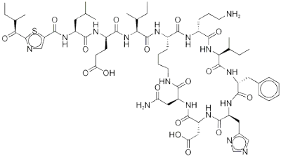 동의어: bacitracin F;Bacitracin H3;N2-[N-[[2-[(S)-2-Methylbutanoyl]thiazol-4-yl]carbonyl]-L-Leu-D-Glu-L-Ile-]cyclo(L-Lys-D-Orn-L-Ile-D-Phe-L-His-D-Asp-L-Asn-);N2-[N-[[2-[(S)-2-Methylbutyryl]thiazole-4-yl]carbonyl]-L-Leu-D-Glu-L-Ile-]cyclo(L-Lys-D-Orn-L-Ile-D-Phe-L-His-D-Asp-L-Asn-);Bacitracin F (>80%);N-[[2-[(2S)-2-Methyl-1-oxobutyl]-4-thiazolyl]carbonyl]-L-leucyl-D-α-glutaMyl-L-isoleucyl-L-lysyl-D-ornithyl-L-isoleucyl-D-phenylalanyl-L-histidyl-D-α-aspartyl-L-asparagine (10→4)-LactaM;Bacitracin F (~75%)