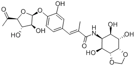 동의어: hygromycin A;5-Deoxy-5-[[(2E)-3-[4-[(6-deoxy-β-D-arabino-5-hexosulofuranosyl)oxy]-3-hydroxyphenyl]-2-methyl-1-oxo-2-propenyl]amino]-1-O,2-O-methylene-D-neo-inositol;Antibiotic WS-1627B;Homomycin;Hygromycin